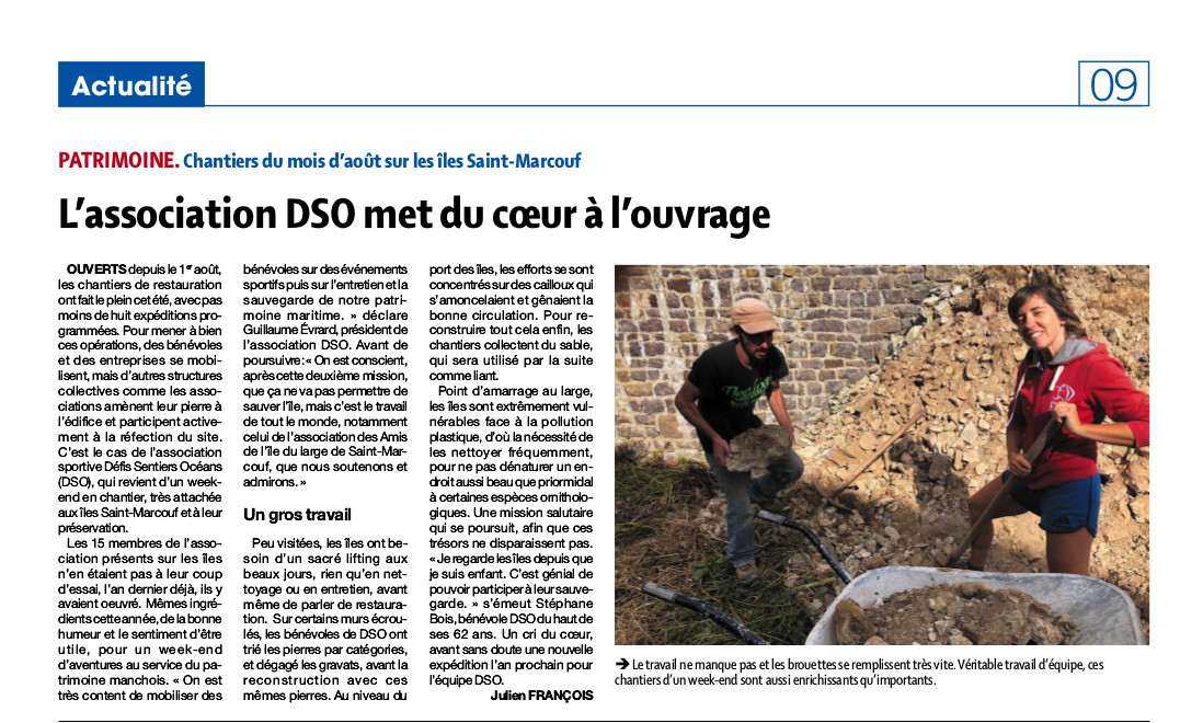 Le second chantier donnera lieu à un départ avec les vieux gréements des associations du Val de Saire. S’en suivront deux chantiers bénévoles, un chantier avec un groupe de scouts, un chantier avec la Mission Locale de Carentan, et un chantier avec le Lycée technique Laplace de Caen, sans oublier plusieurs mini chantiers, dont un avec l’association DSO.