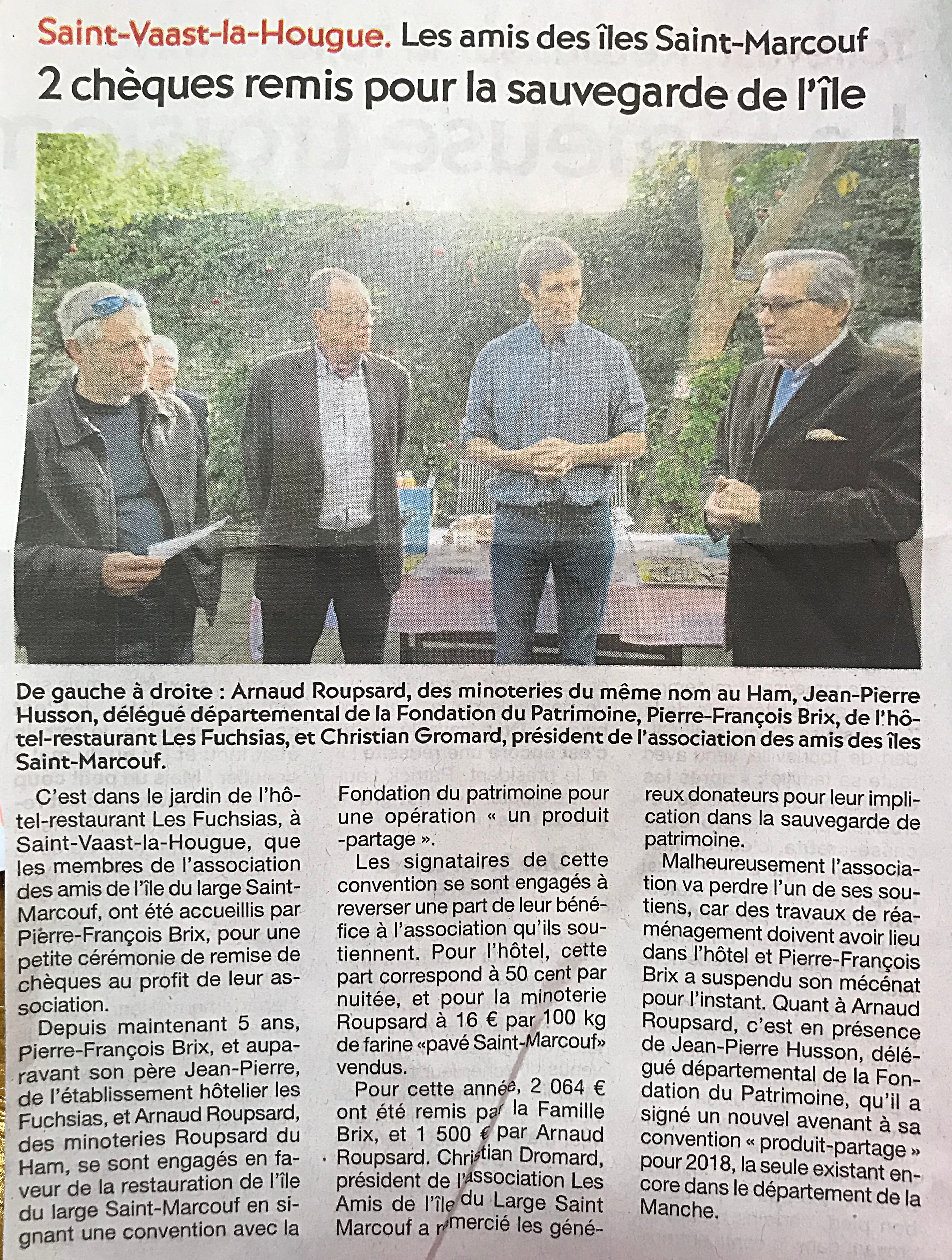 • « La fondation d’Eiffage fait un don de 10 000€ pour l’association Les Amis de l’île du Large Saint-Marcouf » (La Manche Libre 5 juillet 2014) L’Association a depuis toujours encouragé la réinsertion, c’est à ce titre également que la Fondation la soutient.