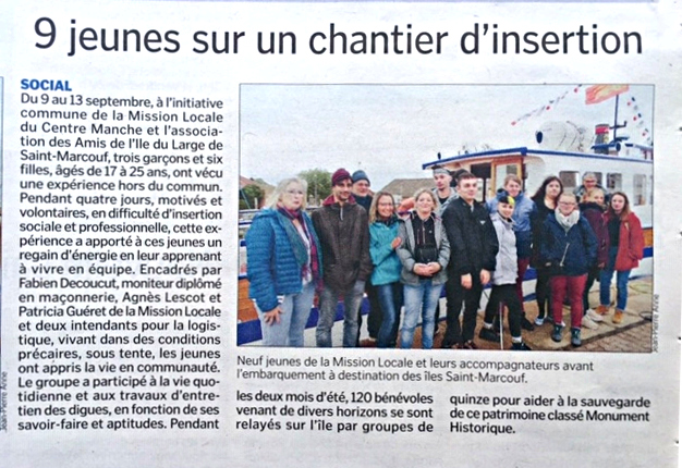 • « Coup de projecteur sur l’île du large Saint-Marcouf » Après plusieurs mois de travail Elan’s, le dispositif d’intégration du GRETA de Bayeux, a mené une campagne de communication autour de l’île du Large St Marcouf avec comme point d’orgue cette manifestation nautique Cap Saint Marcouf  (Ouest France 13 juillet 2014)