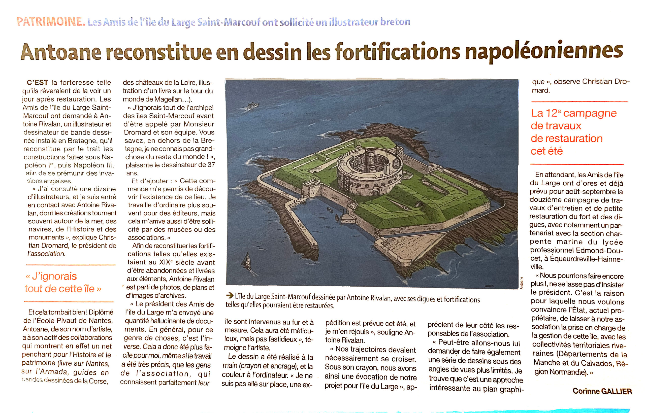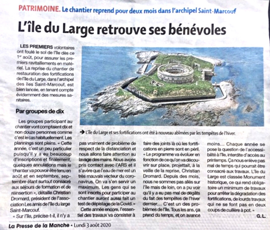 • Présentation de la conférence sur l’île du Large « son Histoire et sa restauration » dans le cadre de l’opération « Pierres en Lumières » lancée par le Conseil général du Calvados et la Fondation du Patrimoine : Sur France Bleu Cotentin le 17 mai à 7h40